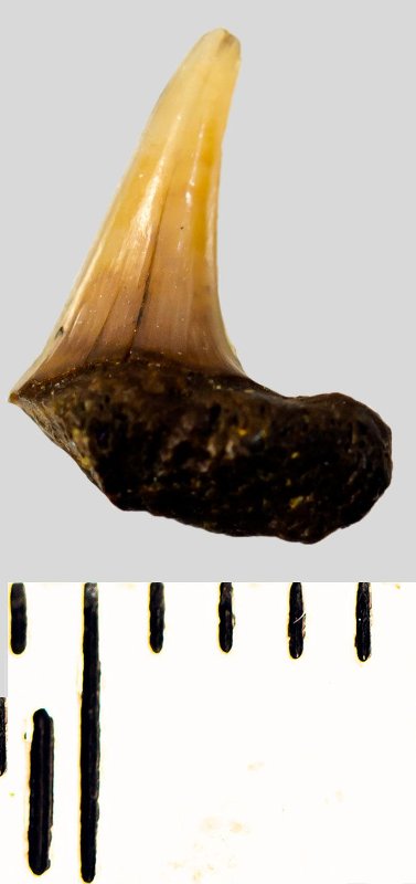 Зуб. Акула. Eostriatolamia subulata (Agassiz, 1843). Классификация: Хордовые Chordata, Позвоночные Vertebrata, Хрящевые рыбы Chondrichthyes, Пластиножаберные Elasmobranchii, Акулы Selachii, Ламнообразные Lamniformes, Песчаные акулы Odontaspididae