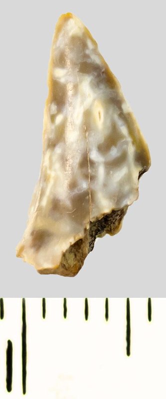 Зуб (фрагмент). Акула. Otodus subserratus (Agassiz, 1843). Классификация: Хордовые Chordata, Позвоночные Vertebrata, Хрящевые рыбы Chondrichthyes, Пластиножаберные Elasmobranchii