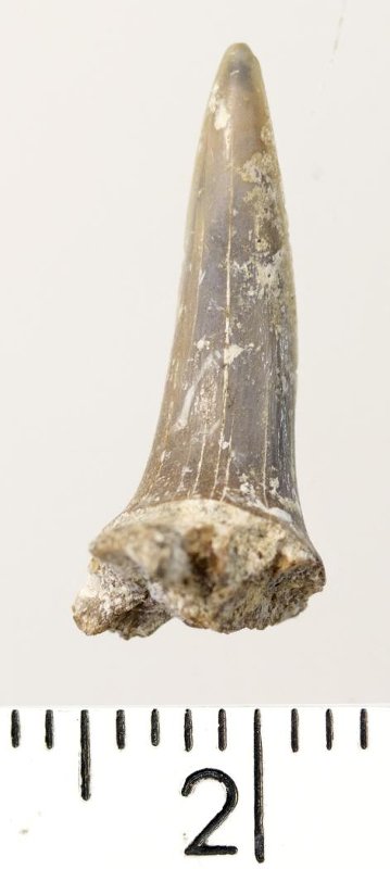 Зуб (фрагмент). Акула. Hypotodus sp. Классификация: Хордовые Chordata, Позвоночные Vertebrata, Хрящевые рыбы Chondrichthyes, Пластиножаберные Elasmobranchii