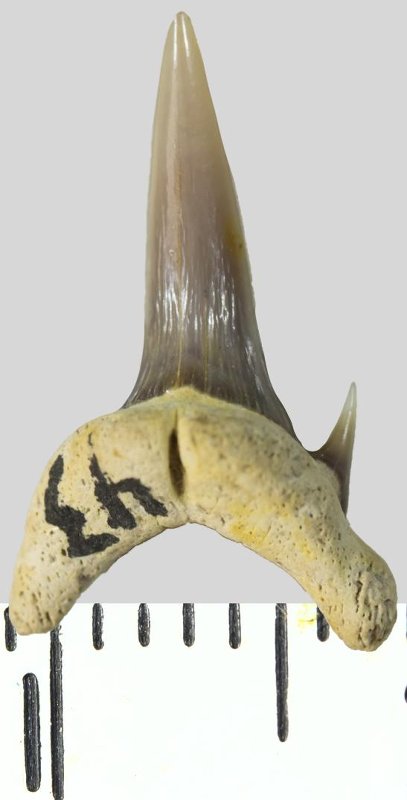 Зуб. Акула. Eostriatolamia sp. Классификация: Хордовые Chordata, Позвоночные Vertebrata, Хрящевые рыбы Chondrichthyes, Пластиножаберные Elasmobranchii