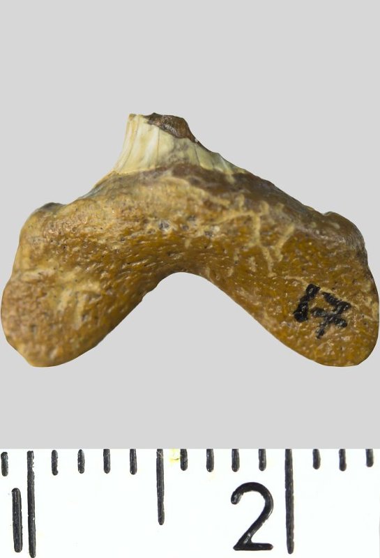 Зуб (фрагмент). Акула. Scapanorhynchus sp. Классификация: Хордовые Chordata, Позвоночные Vertebrata, Хрящевые рыбы Chondrichthyes, Пластиножаберные Elasmobranchii