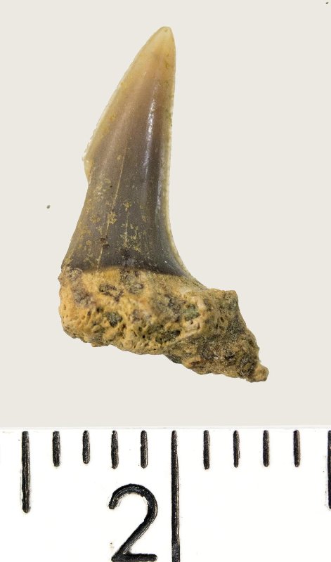 Зуб. Акула. Hypotodus sp. Классификация: Хордовые Chordata, Позвоночные Vertebrata, Хрящевые рыбы Chondrichthyes, Пластиножаберные Elasmobranchii