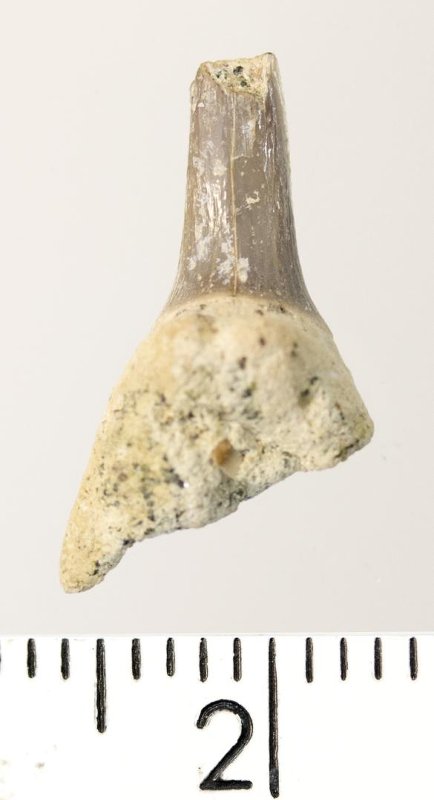 Зуб. Акула. Hypotodus sp. Классификация: Хордовые Chordata, Позвоночные Vertebrata, Хрящевые рыбы Chondrichthyes, Пластиножаберные Elasmobranchii