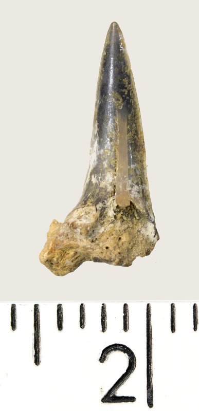 Зуб. Акула. Hypotodus sp. Классификация: Хордовые Chordata, Позвоночные Vertebrata, Хрящевые рыбы Chondrichthyes, Пластиножаберные Elasmobranchii
