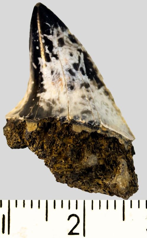 Зуб. Акула. Otodus subserratus (Agassiz, 1843). Классификация: Хордовые Chordata, Позвоночные Vertebrata, Хрящевые рыбы Chondrichthyes, Пластиножаберные Elasmobranchii