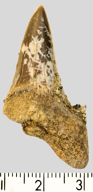 Зуб. Акула. Otodus subserratus (Agassiz, 1843). Классификация: Хордовые Chordata, Позвоночные Vertebrata, Хрящевые рыбы Chondrichthyes, Пластиножаберные Elasmobranchii
