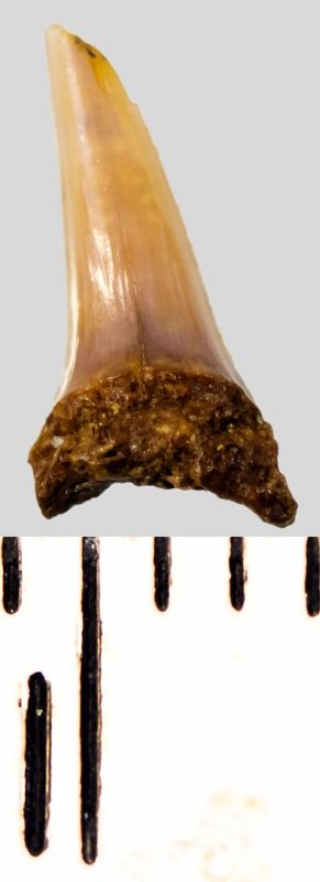 Зуб. Акула. Eostriatolamia subulata (Agassiz, 1843). Классификация: Хордовые Chordata, Позвоночные Vertebrata, Хрящевые рыбы Chondrichthyes, Пластиножаберные Elasmobranchii, Акулы Selachii, Ламнообразные Lamniformes, Песчаные акулы Odontaspididae