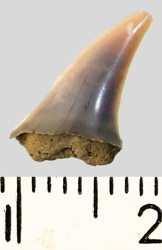 Зуб (фрагмент). Акула. Hypotodus robustus (Leriche, 1921). Классификация: Хордовые Chordata, Позвоночные Vertebrata, Хрящевые рыбы Chondrichthyes, Пластиножаберные Elasmobranchii