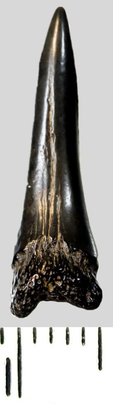 Зуб (фрагмент). Акула. Striatolamia macrota (Agassiz, 1843)