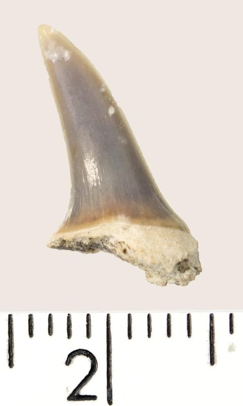 Зуб (фрагмент). Акула. Hypotodus sp. Классификация: Хордовые Chordata, Позвоночные Vertebrata, Хрящевые рыбы Chondrichthyes, Пластиножаберные Elasmobranchii