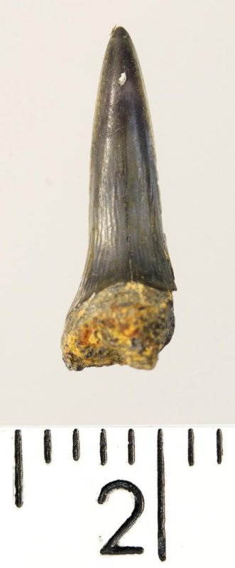 Зуб (фрагмент). Акула. Hypotodus sp. Классификация: Хордовые Chordata, Позвоночные Vertebrata, Хрящевые рыбы Chondrichthyes, Пластиножаберные Elasmobranchii