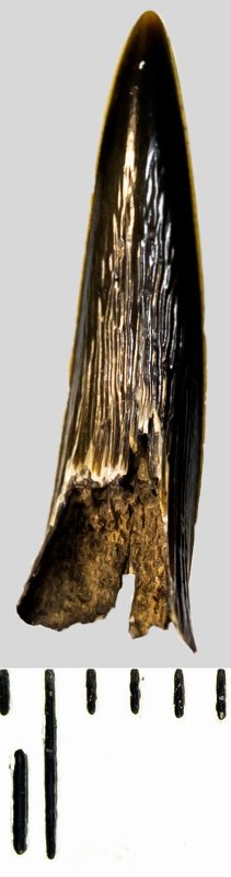 Зуб (фрагмент). Акула. Striatolamia macrota (Agassiz, 1843)