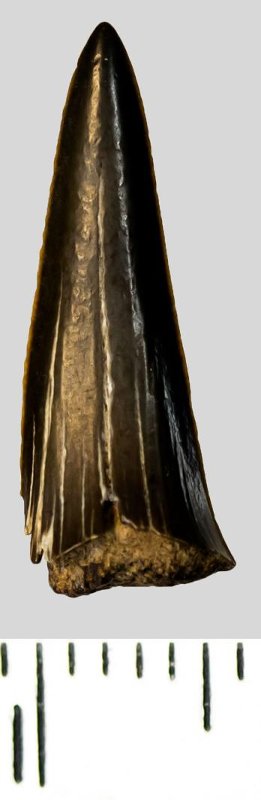 Зуб (фрагмент). Акула. Striatolamia macrota (Agassiz, 1843)