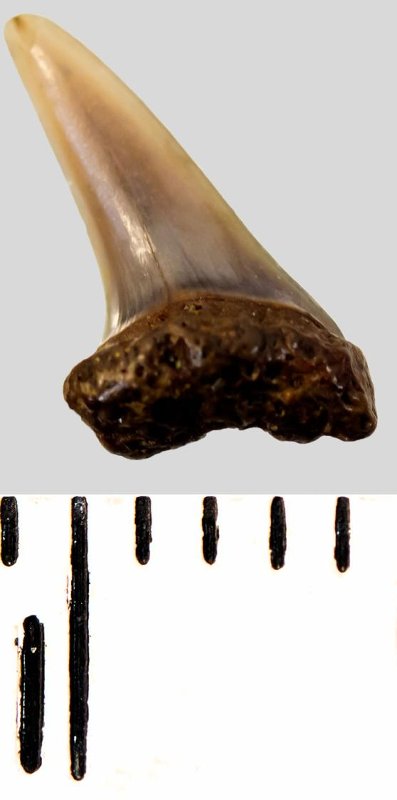 Зуб. Акула. Eostriatolamia subulata (Agassiz, 1843). Классификация: Хордовые Chordata, Позвоночные Vertebrata, Хрящевые рыбы Chondrichthyes, Пластиножаберные Elasmobranchii, Акулы Selachii, Ламнообразные Lamniformes, Песчаные акулы Odontaspididae
