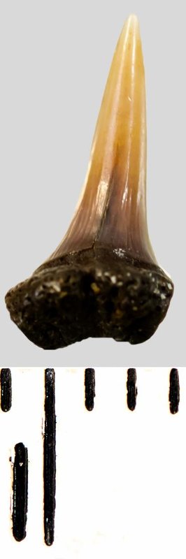 Зуб. Акула. Eostriatolamia subulata (Agassiz, 1843). Классификация: Хордовые Chordata, Позвоночные Vertebrata, Хрящевые рыбы Chondrichthyes, Пластиножаберные Elasmobranchii, Акулы Selachii, Ламнообразные Lamniformes, Песчаные акулы Odontaspididae