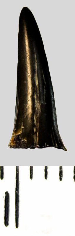 Зуб (фрагмент). Акула. Striatolamia macrota (Agassiz, 1843)