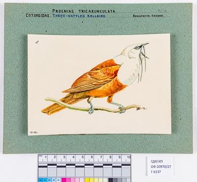 Трёхусый звонарь. Procnias tricarunculatus. Рисунок