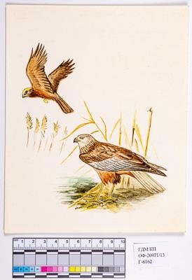 Болотный лунь - самец и самка. Circus aeruginosus. Рисунок