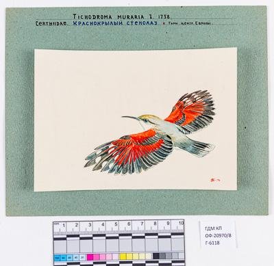 Краснокрылый стенолаз. Tichodroma muraria. Рисунок