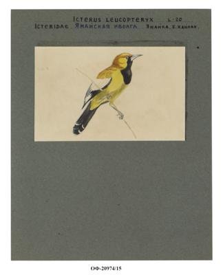 Ямайский цветной трупиал, или ямайский трупиал. Icterus leucopteryx. Рисунок
