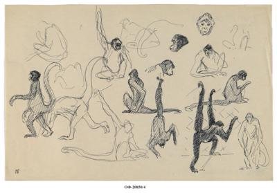 Наброски коаты (паукообразной обезьяны). Рисунок