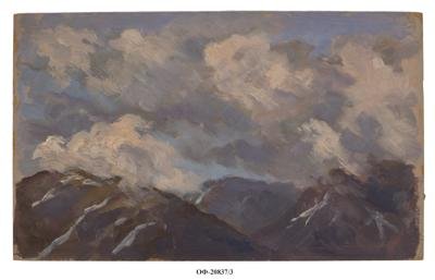Тучи над вершинами гор. Картина