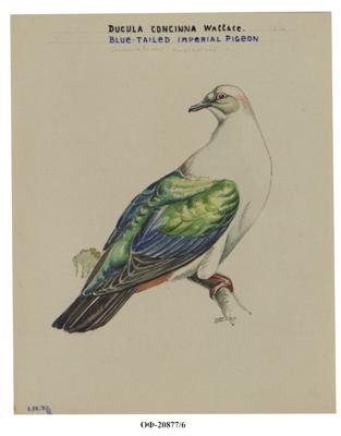 Синехвостый плодоядный голубь. Ducula concinna (Wallace, 1865). Рисунок