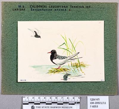 Белокрылая болотная крачка. Chlidonias leucopterus. Рисунок
