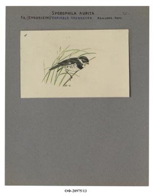 Чёрная вьюрковая овсянка. Sporophila corvina. Рисунок