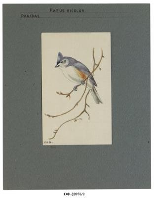 Острохохлая синица. Baeolophus bicolor. Рисунок
