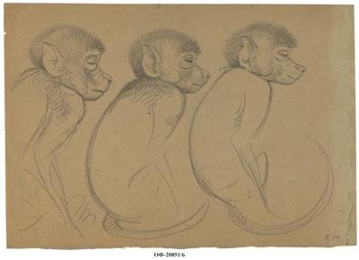 Три наброска детеныша павиана. Харьков. Рисунок