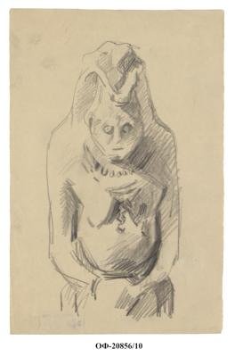 Зарисовка половецкой каменной бабы. Рисунок