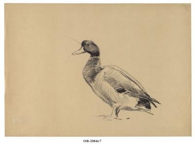 Зарисовка селезня кряквы. Вид сбоку. Рисунок