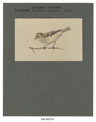 Восточный эмпидонакс, или американская восточная мухоловка. Empidonax virescens. Рисунок