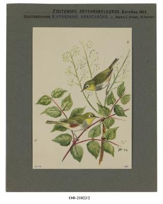 Буробокая белоглазка, самец и самка. Zosterops erythropleurus. Рисунок