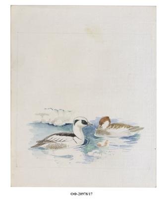 Луток, или малый крохаль. Mergellus albellus. Самец и самка. Рисунок