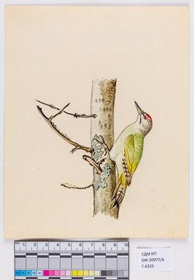 Седой дятел, или седой зелёный дятел. Picus canus. Рисунок