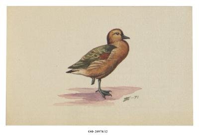 Рыжая свистящая утка, или рыжая древесная утка. Dendrocygna bicolor. Рисунок