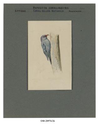 Коралловоклювый поползень. Hyppositta corallirostris. Рисунок