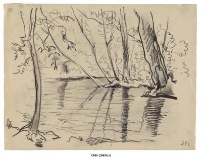 Воронежский бобровый заповедник. Зарисовка запруды. Рисунок