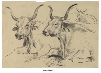 Зарисовки лежащей коровы. Рисунок