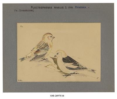 Пуночка, самка и самец. Plectrophenax nivalis. Рисунок