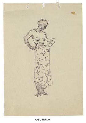 Женщина, одевающаяся в национальную одежду. Рисунок