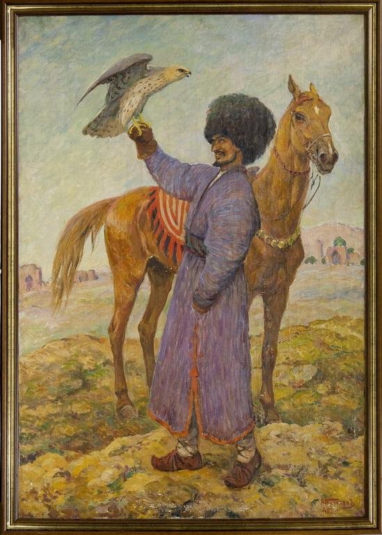 Сокольничий туркмен. [Туркмен с ловчим соколом (туркестанским)]. Картина
