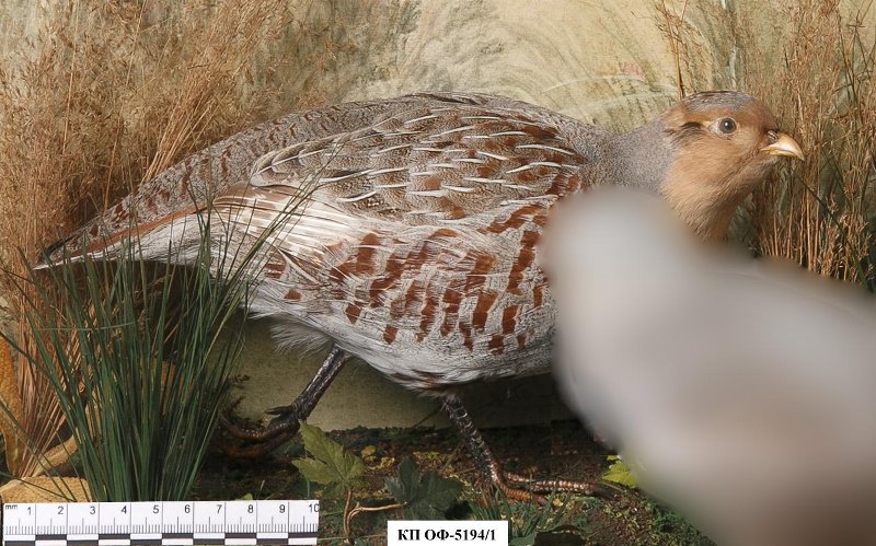 Чучело. Cерая куропатка. Perdix perdix (L.,1758). Классификация: Хордовые Chordata, Позвоночные Vertebrata, Птицы Aves, Курообразные Galliformes, Фазановые Phasianidae, Серая куропатка Perdix perdix (L.,1758)