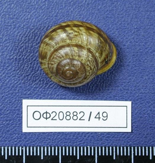 древесная улитка (наземный брюхоногий моллюск). Arianta arbustorum (Linnaeus, 1758), Helicidae. Классификация: Моллюски Mollusca, Брюхоногие Gastropoda