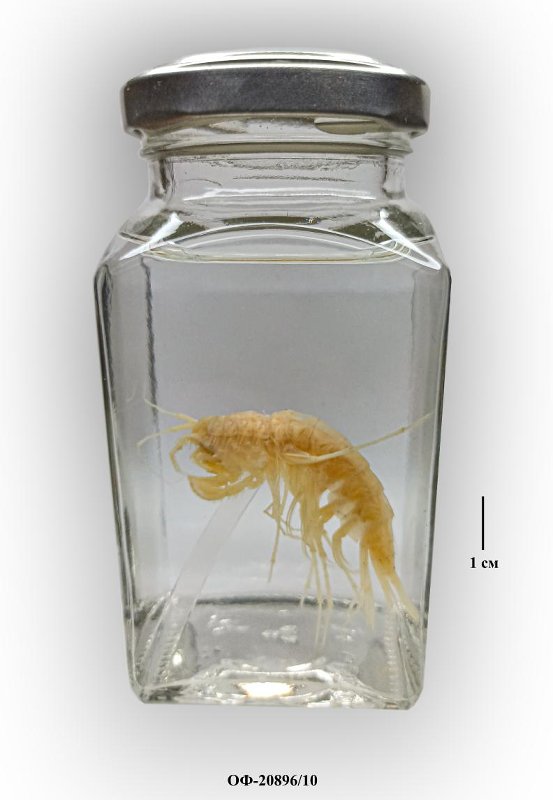 Влажный препарат ОФ-20896/10: Байкальский Бокоплав, или Амфипода - Brachyuropus grewingkii (Dybowsky, 1874). 1 ad. Банка 07/13-234. Научно-коллекционный карцинологический препарат. Пол: самец. Возраст: ad