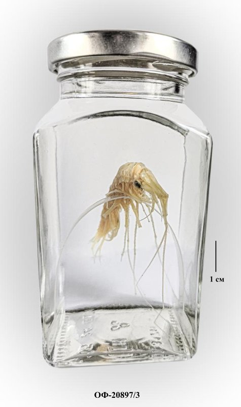 Влажный препарат ОФ-20896/1: Байкальский Бокоплав, или Амфипода, - Garjajewia sarsi Sowinsky, 1915. 1 ad с одним пигментированным глазом, а другим - нет; пол не определён. Банка 02/13-227. Научно-коллекционный карцинологический препарат. Пол: не определен. Возраст: ad