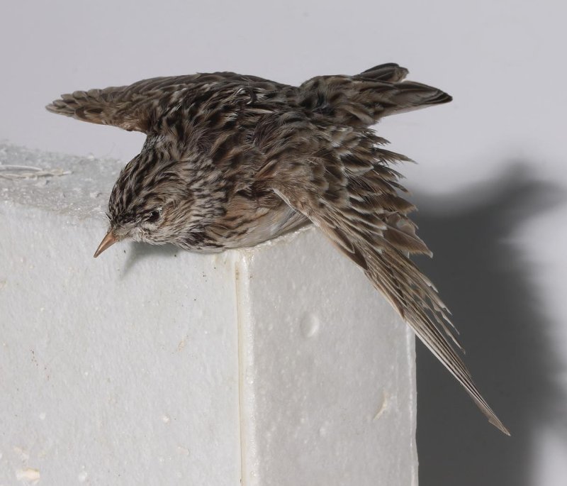 Чучело. Полевой жаворонок. Alauda arvensis L.,1758. Классификация: Хордовые Chordata, Позвоночные Vertebrata, Птицы Aves, Воробьинообразные Passeriformes, Жаворонковые Alaudidae, Полевой жаворонок Alauda arvensis L.,1758