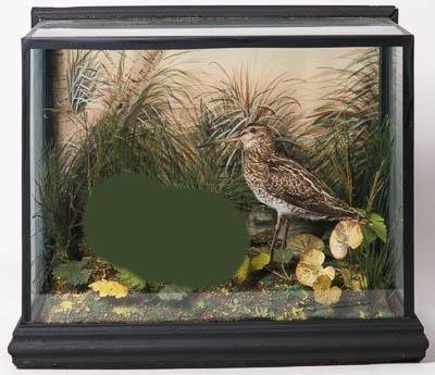 Чучело в биогруппе. Бекас в биогруппе "Бекас и гаршнеп". Gallinago gallinago (L.,1758). Классификация: Хордовые Chordata, Позвоночные Vertebrata, Птицы Aves, Ржанкообразные Charadriiformes, Бекасовые Scolopacidae, Бекас Gallinago gallinago (L.,1758)
